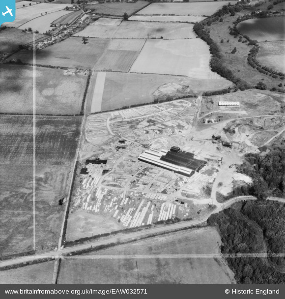 EAW032571 ENGLAND (1950). Norcon Ltd Concrete Pipe Works, Trysull, 1950. This image was marked by Aerofilms Ltd for photo editing.