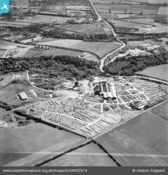 EAW032574 ENGLAND (1950). Norcon Ltd Concrete Pipe Works at Smestow Bridge and environs, Trysull, 1950. This image was marked by Aerofilms Ltd for photo editing.