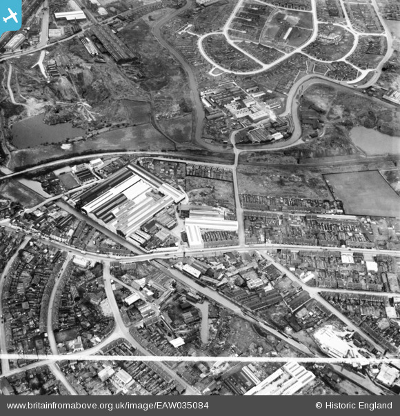 EAW035084 ENGLAND (1951). Great Bridge Street and environs, Tipton, 1951. This image was marked by Aerofilms Ltd for photo editing.