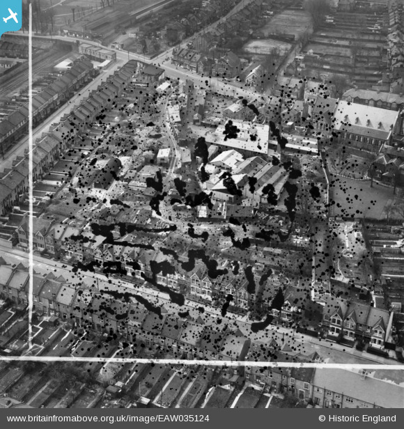 Title | [EAW035124] Ebonite Mouldings Factory on Spring Lane and environs, Woodside, 1951. This image has been produced from a damaged negative. |