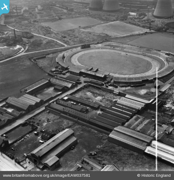 EAW037581 ENGLAND (1951). The G. W. Thornton Cutlery Works off Lowther Road and Owlerton Stadium, Owlerton, 1951. This image has been produced from a print marked by Aerofilms Ltd for photo editing.