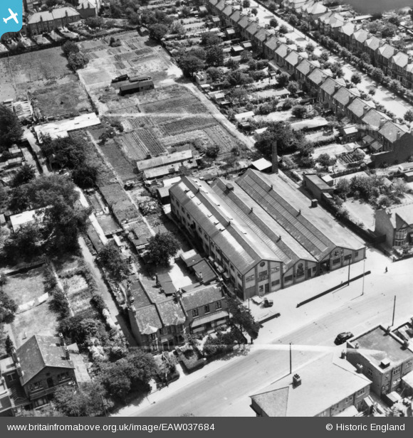 EAW037684 ENGLAND (1951). The London Rubber Company (British Latex Products) Rubber Works off Chingford Mount Road, Chingford, 1951. This image has been produced from a print marked by Aerofilms Ltd for photo editing.