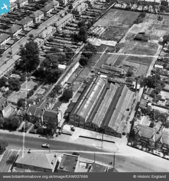 EAW037686 ENGLAND (1951). The London Rubber Company (British Latex Products) Rubber Works off Chingford Mount Road, Chingford, 1951. This image has been produced from a print marked by Aerofilms Ltd for photo editing.