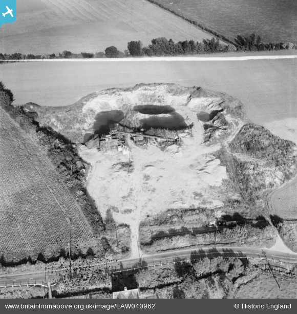 Title | [EAW040962] A gravel pit off the A1060, Roxwell, 1951. This image was marked by Aerofilms Ltd for photo editing. |