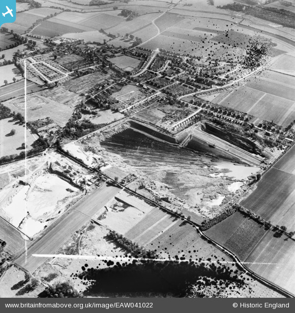 EAW041022 ENGLAND (1951). Clay pit between Sandy Lane and Purfleet Road, Aveley, 1951. This image was marked by Aerofilms Ltd for photo editing.