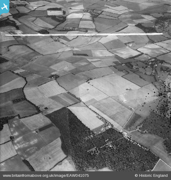 EAW041075 ENGLAND (1951). The Head's Farm Estate, Chaddleworth Common Copse and surrounding downland, Chaddleworth, 1951. This image was marked by Aerofilms Ltd for photo editing.
