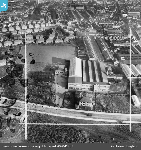 Title | [EAW041437] Mansfield Hosiery Mills Ltd Works, Mansfield, 1951. This image has been produced from a damaged negative. |