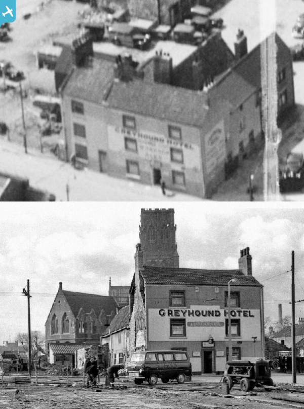 EAW043790 ENGLAND (1952). Hanley's Flour Mills, St George's Church and environs, Doncaster, 1952. This image was marked by Aerofilms Ltd for photo editing.