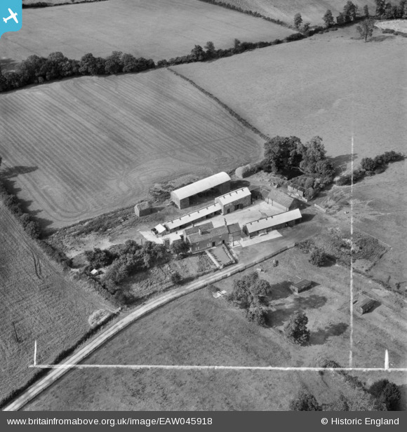 EAW045918 ENGLAND (1952). Rushey Fields Farm, Woodhouse, 1952. This image was marked by Aerofilms Ltd for photo editing.