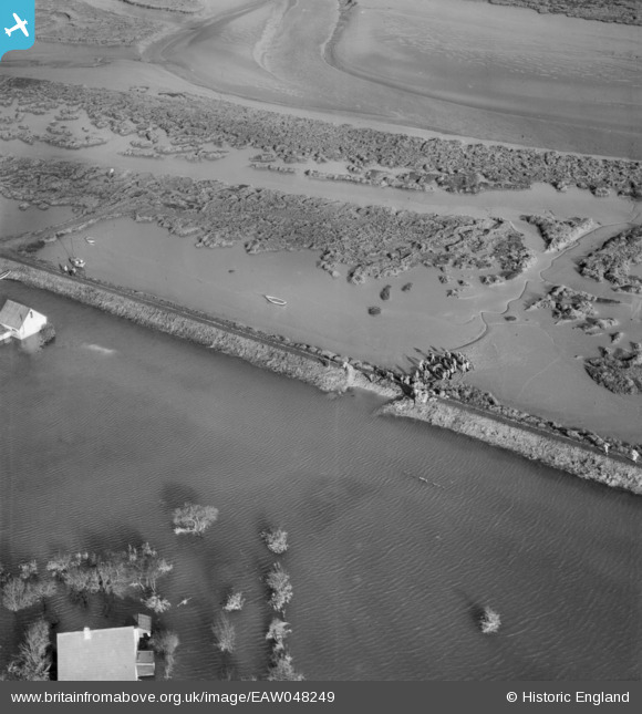 | Title | [EAW048249] Damaged flood defences at Sunken Marsh near Hoppet Cottage, Canvey Island, 1953 |