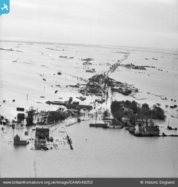 | Title | [EAW048253] Extensive flooding around Churchend, Foulness Island, from the north, 1953 |