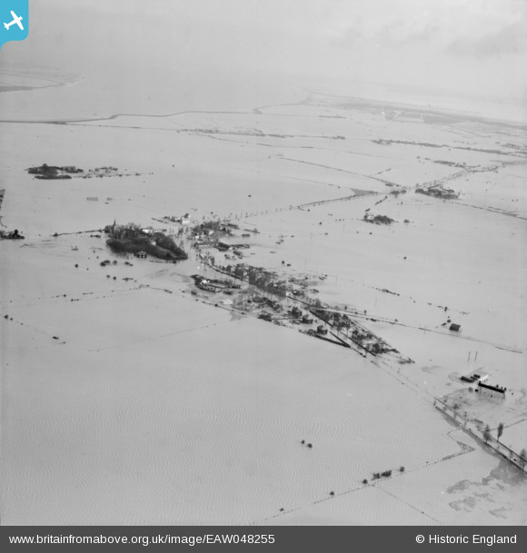 | Title | [EAW048255] Extensive flooding around Churchend, Foulness Island, from the south-west, 1953 |