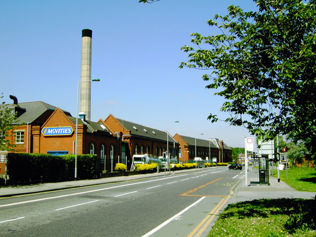 McVitie and Price Attached image is from Wikipedia [[McVitie's]] showing McVitie's Biscuit Factory, Wellington Road North, Stockport close to the border with Manchester. Looking north towards the Manchester suburb of Levenshulme in May 2008. The image is copyright Slbs, licenced under Creative Commons Attribution Share Alike licence. This factory specialises in the chocolate covered biscuits, especially the famed Penguin bars and the (not a biscuit) Jaffa Cakes (at a rate of 2000 per minute). The old red brick buildings on the A6 remain from this image - between this building and the railway there has been much modernisation and rebuilding. All McVities Jaffa cakes are made here, the production line is over a mile long and the Jaffa Cake facility covers an acre. The local air is much improved by the smells from the factory when sponge is cooking. The road to the North is the boundary between Manchester (Levenshulme) and Stockport (Heaton Norris - this part is now called Heaton Chapel). The site is known as McVities, and is now part of United Biscuits, formed from "McVitie and Price" and "MacFarland and Lang". Robert McVitie was an apprentice baker in Edinburgh whose son, also Robert, specialised in biscuits (they kept longer).. Charles Price, a salesman for Cadbury, joined McVitie in 1888. The Manchester factory originated in the need for more capacity to supply the troops in World War 1 with hard biscuits. World War 2 and a lack of ingredients drove the cooperation with MacFarlane and Lang, and the number of biscuit types reduced from 370 - to ten. On the death of the then managing director Robert Grant after the war the need to pay death duties was an additional driver to full integration of the two companies (1948). William McDonald, of Glasgow, known for McDonalds Penguin chocolate covered biscuits, was added to the United Biscuits family. McDonalds was from Glasgow, and first produced the Penguin bar in 1932. The Jaffa Cake was invented by McVitie and Price in 1927, and there are now many replica biscuits which use differing recipes. In 2000 United Biscuits was sold to a consortium which included Nabisco, and there were a number of changes to brand ownership in the many international markets. There was a further sale in 2006 to a differing consortium. These Britain from Above images show an active works sports facility with football pitches, tennis courts and a bowling green. The bowling green remains, with a car park between the green and the A6 road. Up to the green, where the image shows football pitches, there is now a full housing development. What shows here as two football pitches is shown on some old maps as a cricket pitch and the area probably saw both uses. The railway line runs from Manchester to the North to Stockport to the South and then on to Buxton, Crewe, Stoke, London etc. The sidings for the Erwood Park Works across the lines from McVities has been removed. The other side of the tracks from McVities was used by Crossley Motors and Fairey Engineering for aircraft and car production. Much of the site is now light engineering, with two small bus companies depots. The Fairey Band still has its rehearsal rooms there but is now self financing. |