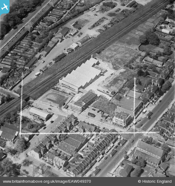 EAW049370 ENGLAND (1953). The MK Electric Ltd Factory on Park Road and environs, Edmonton, 1953. This image was marked by Aerofilms Ltd for photo editing.