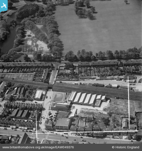 EAW049376 ENGLAND (1953). The MK Electric Ltd Factory on Park Road and environs, Edmonton, 1953. This image was marked by Aerofilms Ltd for photo editing.