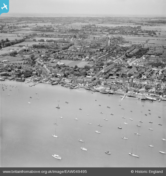 | Title | [EAW049495] Boats moored on the River Crouch and the town, Burnham-On-Crouch, from the south, 1953 |