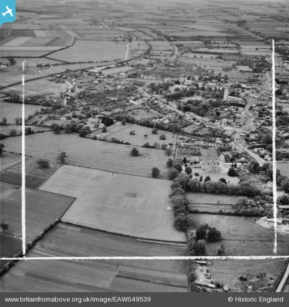 EAW049539 ENGLAND (1953). The Soham Grammar School (Beechurst House) and the town, Soham, 1953. This image was marked by Aerofilms Ltd for photo editing.