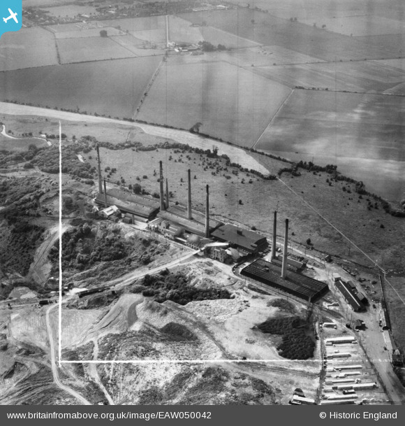 EAW050042 ENGLAND (1953). The London Brick Co Works, Arlesey, 1953. This image was marked by Aerofilms Ltd for photo editing.