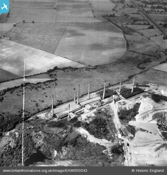 EAW050043 ENGLAND (1953). The London Brick Co Works, Arlesey, 1953. This image was marked by Aerofilms Ltd for photo editing.
