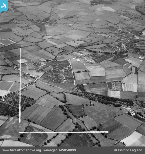 EAW050099 ENGLAND (1953). The town and orchards around Whaddon Grange, Chipping Campden, 1953. This image was marked by Aerofilms Ltd for photo editing.