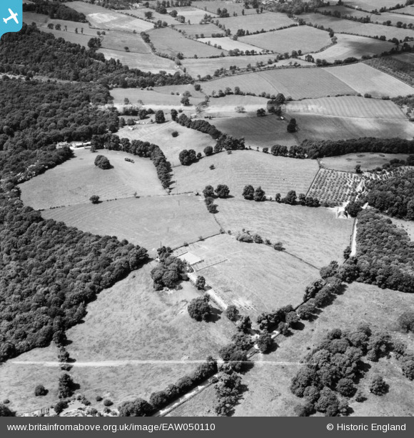 EAW050110 ENGLAND (1953). Fields by Knapp Farm House, Weston-sub-Edge, 1953. This image was marked by Aerofilms Ltd for photo editing.