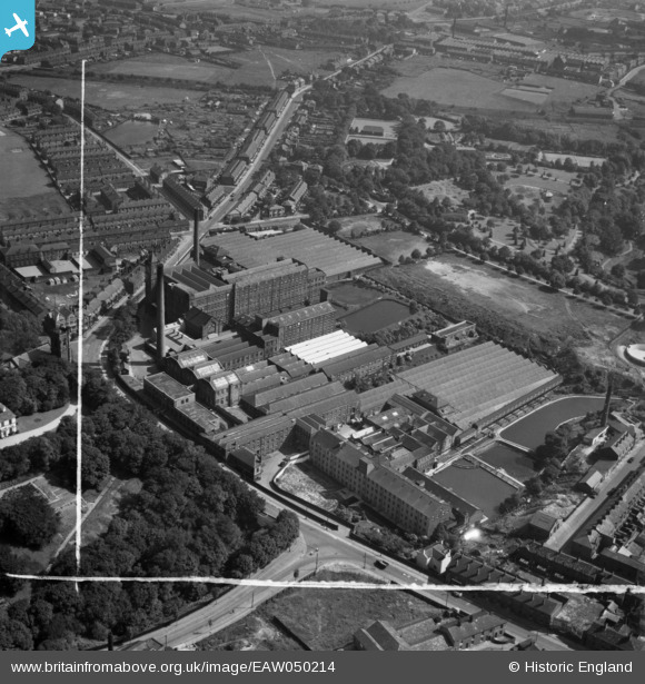 EAW050214 ENGLAND (1953). Carrfield Cotton Mill and adjacent mill buildings on Newton Street, Hyde, 1953. This image was marked by Aerofilms Ltd for photo editing.