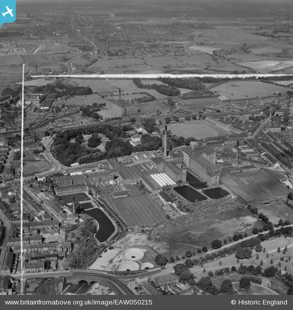 EAW050215 ENGLAND (1953). Carrfield Cotton Mill and adjacent mill buildings on Newton Street, Hyde, 1953. This image was marked by Aerofilms Ltd for photo editing.