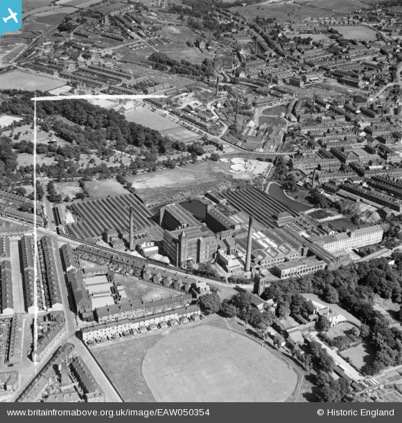 | Title | [EAW050354] Carrfield and Baileyfield Cotton Mills and environs, Flowery Field, 1953. This image was marked by Aerofilms Ltd for photo editing. |
