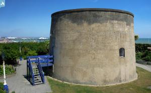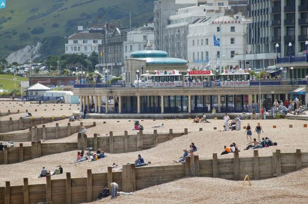 A fantastic hazy wide shot of Eastbourne's seafront showing the Western Lawns with the Wish Tower (No. 73 Martello Tower), the Pier, Devonshire Park and the Grand Hotel. Although Wilmington Square is in the title, you can't actually see it too well but it is directly opposite the Wish Tower. |