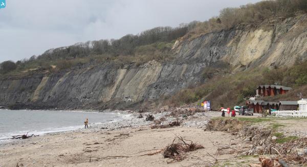 The Lyme Regis cement plant began in the 1820s making an imitation “Roman Cement” from concretions in the Lias Shale. The plant began making Portland cement around 1885, and was converted to chamber kiln operation around 1899. Like many such small marine-based plants, it faded away during WWI. |
