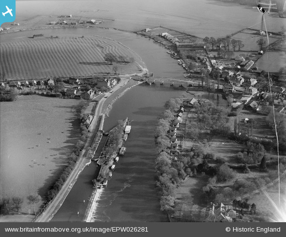 EPW026281 ENGLAND (1929). Chertsey Lock and Bridge, Chertsey, 1929