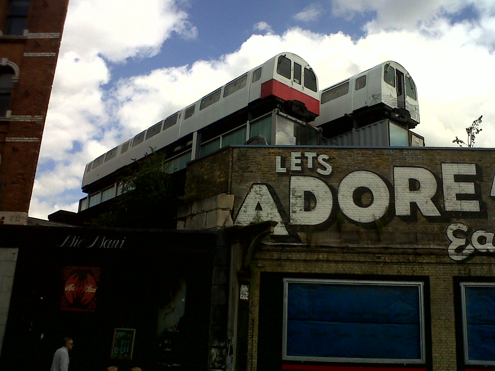 Tube cars at a height in Great Eastern Street 14/08/2013 probably located out of shot in the original photograph to the south east. |