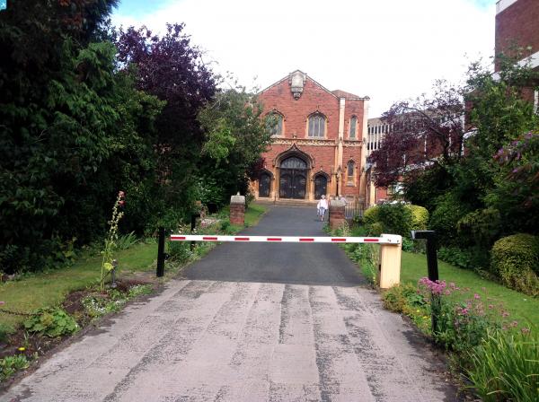 The Parish Church of St. Mary and All Saints' Kidderminster, 15/08/2015. There is a five lane dual carriageway road cutting across this photo which severs the Parish Church from the centre of Kidderminster. |