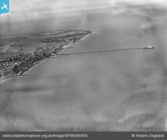EPW046904 ENGLAND (1935). New Walton Pier, the seafront and the town, Walton-on-the-Naze, from the south, 1935
