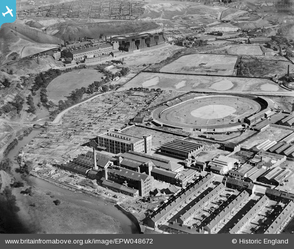 EPW048672 ENGLAND (1935). George Bassett and Co Ltd Confectionery Works and the Sports Stadium at Owlerton, Sheffield, 1935