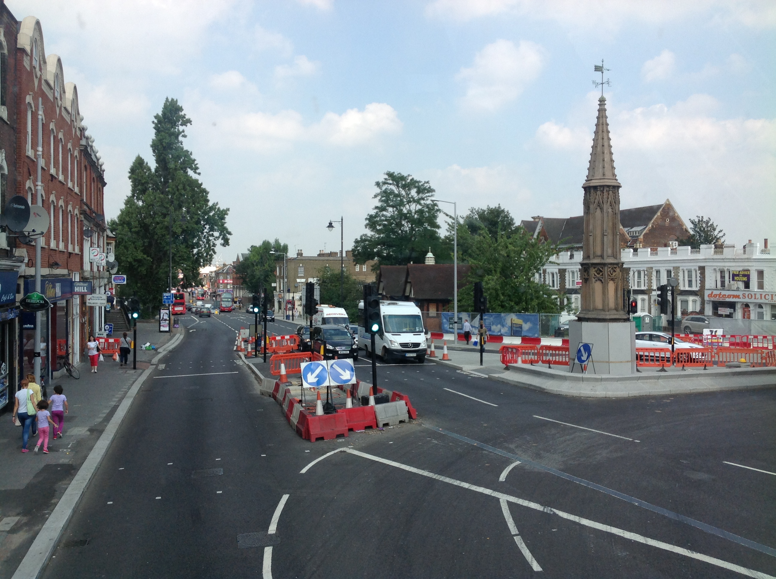 This was at the top of Bruce Grove where the road joined Lordship Lane. It was the place where Trolly Buses stopped to move their connections to a new set of wires. I understand that Bruce Grove was the drive up to Bruce Castle itself originally. The castle can be faintly seen in the corner of the picture. |