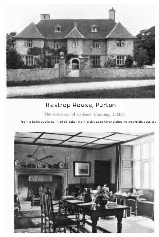 Image of house exterior and hall, c 1919 taken from archive.org "The Story of Purton" by Ethel Richardson. Claimed by archive.org to be no copyright. Book from University of California. |