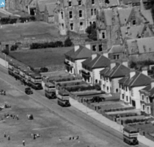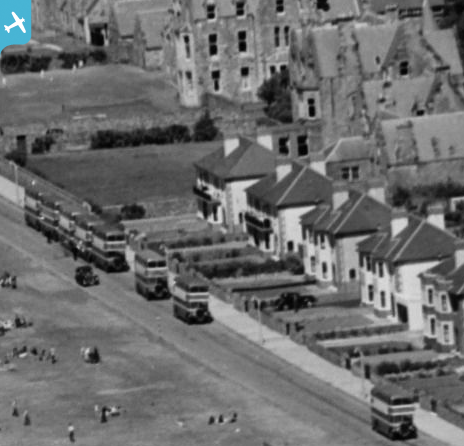 This photograph is wrongly titled. This is the south beach at Seafield, with Seafield Drive in the bottom right and all the buses parked in Blackburn Drive in the top center. |
