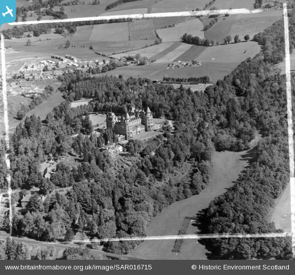 SAR016715 SCOTLAND (1952). Pitlochry, views with Atholl Paalce Hotel in centre Moulin, Perthshire, Scotland. An oblique aerial photograph taken facing North. This image was marked by AeroPictorial Ltd for photo editing.