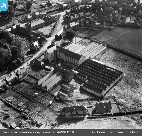 SAW011519 SCOTLAND (1947). Ballantyne's Cashmere Caerlee Mills, Damside, Innerleithen. An oblique aerial photograph taken facing south-east. This image has been produced from a crop marked negative.