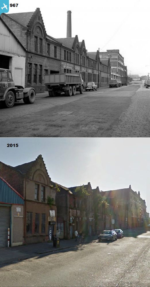 SAW016952 SCOTLAND (1948). Glasgow, general view, showing R A Peacock and Son Ltd. Whitefield Bakery, Fairley Street and Ibrox Terrace. An oblique aerial photograph taken facing south. This image has been produced from a crop marked negative.