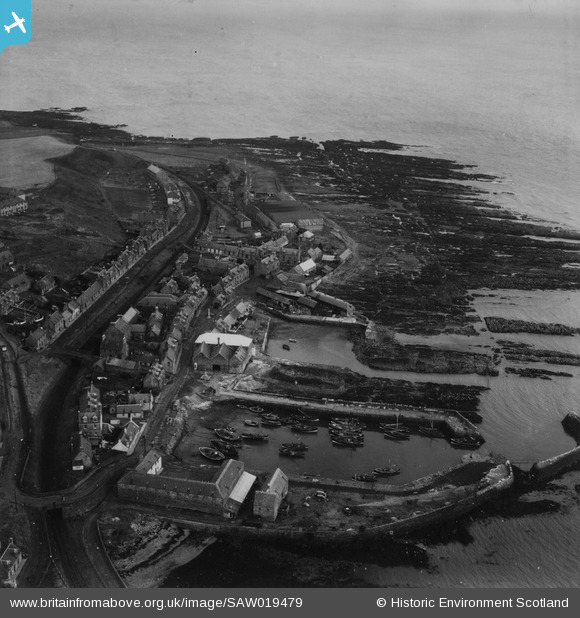 SAW019479 SCOTLAND (1948). Gourdon, general view, showing Gourdon Harbour and W Peter and Co. Ltd. Selbie Works. An oblique aerial photograph taken facing east. This image has been produced from a print.