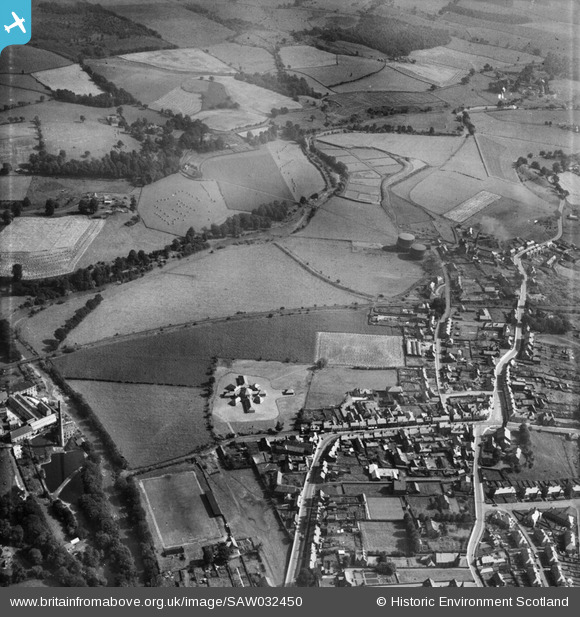 SAW032450 SCOTLAND (1950). Denny, general view, showing Broad Street and Herbertshire Print Works. An oblique aerial photograph taken facing east.