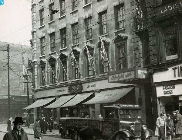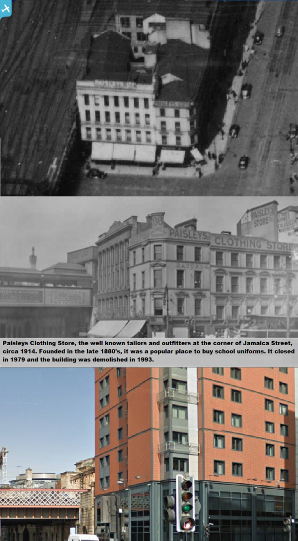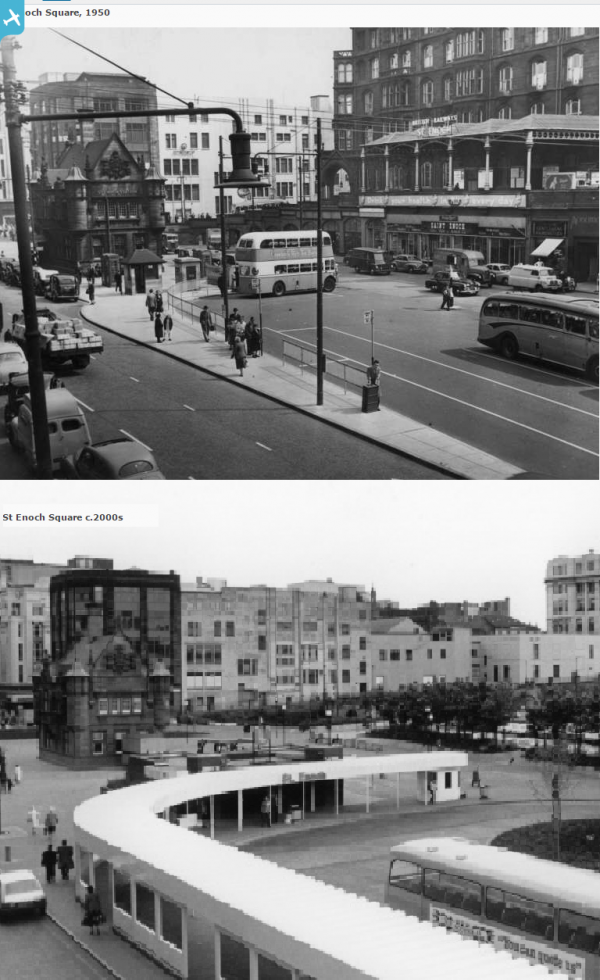 SAW035931 SCOTLAND (1951). Glasgow, general view, showing St Enoch Station and Jamaica Street. An oblique aerial photograph taken facing north. This image has been produced from a print.