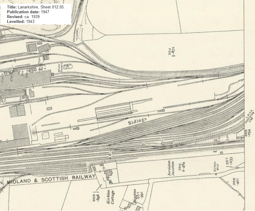 Dear all, Thanks for this; I've checked the 3rd and 4th edition OS, and I am happy to validate this location. I've not found any mapping or photographic evidence which shows the sheds build perpendicular to the tracks, but the bends in the road, Kirklea, Kirklee Cottage and the Biggins (the cottages), signal box and water towers all help pinpoint the image.