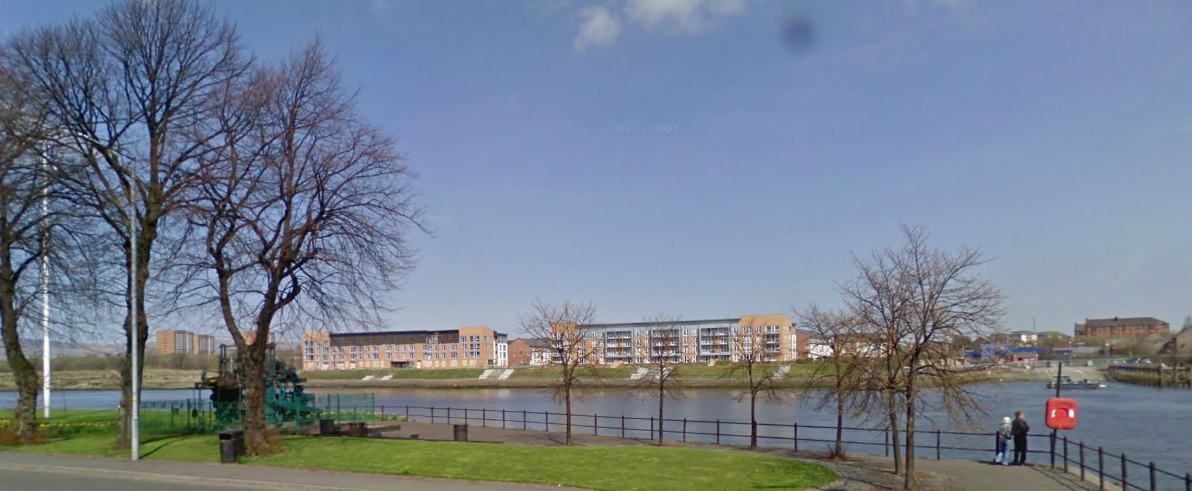 On the Ferry Green to the right of flag-pole, and an odd-looking structure from a distance, is the engine of the old paddle tug named 'Clyde'. The power station has been replaced by new housing but the flag-pole and the engine remain. |