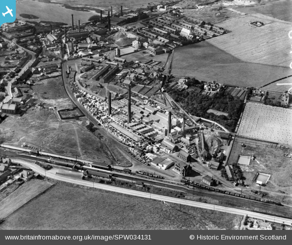 SPW034131 SCOTLAND (1930). Glenboig Union Fireclay Co. Star Fireclay Works and Union Fireclay Works, Old Monkland, Lanarkshire, Scotland, 1930. An oblique aerial photograph taken facing west. This image has been produced from a marked negative.