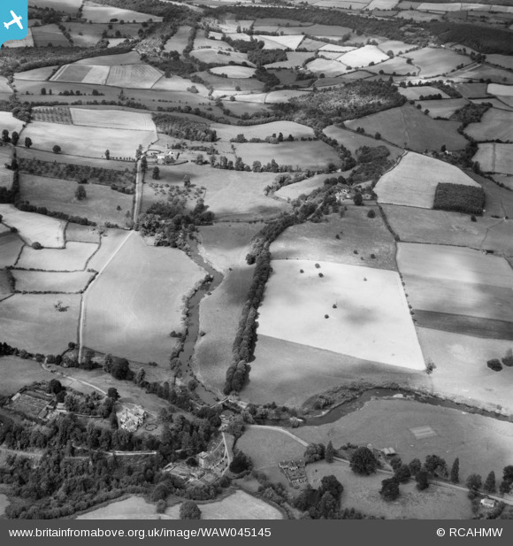 WAW045145 WALES (1952). Distant view of Rockfield Park, Rockfield, commissioned by D H Lloyd Esq.. Oblique aerial photograph, 5½" cut roll film.