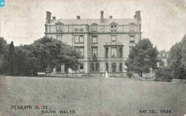 WPW008625 WALES (1923). View of Penarth showing St Augustine's church and Penarth Hotel, oblique aerial view. 5"x4" black and white glass plate negative.