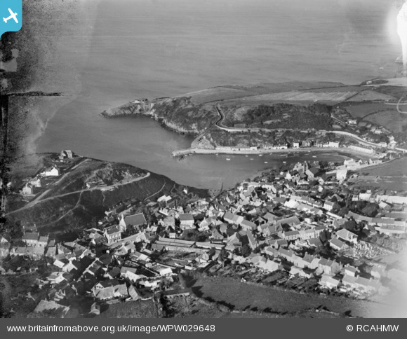 WPW029648 WALES (1929). View of Fishguard, oblique aerial view. 5"x4" black and white glass plate negative.